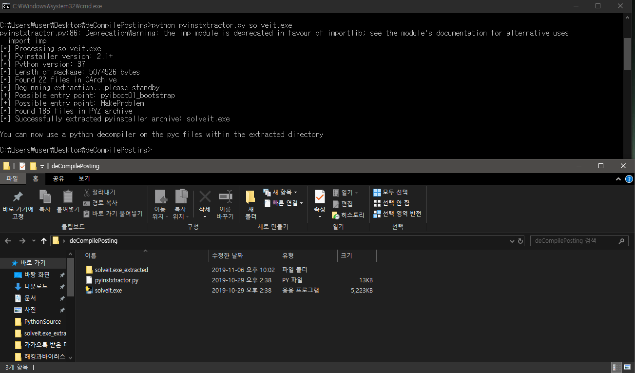 2번 도구인 pyinstxtractor.py로 solveit.exe 파일을 열면 다음과 같이 하나의 폴더가 생성됩니다.