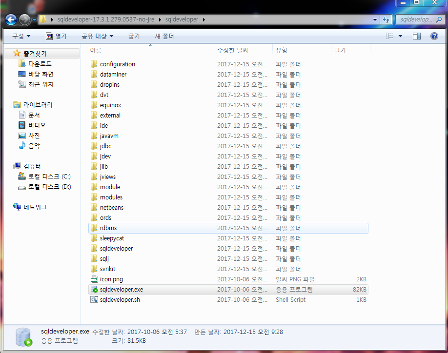 실행은 sqldeveloper.exe를 통해 실행 시킵시다