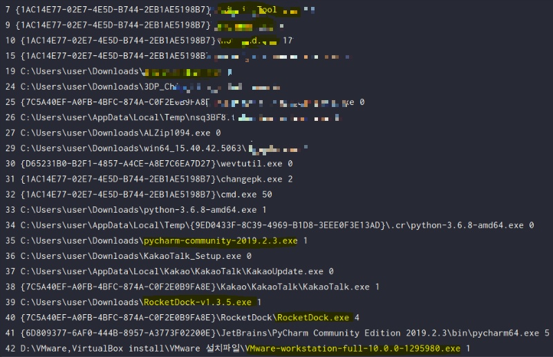 아래의 사진은 제가 쓰고 있는 실제 컴퓨터에서 사용했던 프로그램 목록이 들어있는 레지스트리 정보입니다. 보시는 바와 같이 알 수 없는 문자열로 되어있습니다.
