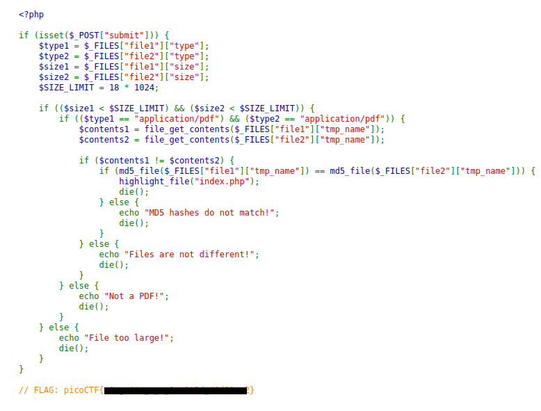 문제에서 요구하는 바는 Hash 값이 같은 서로 다른 두 파일을 제출하는 것이다. 구글링을 통해 이러한 특성을 가진 파일을 제공해주는 사이트를 찾았다. https://www.mscs.dal.ca/~selinger/md5collision/