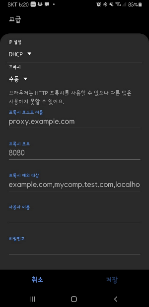 이후 Android 핸드폰에서 proxy 주소로 접근할 수 있게 세팅이 필요합니다.