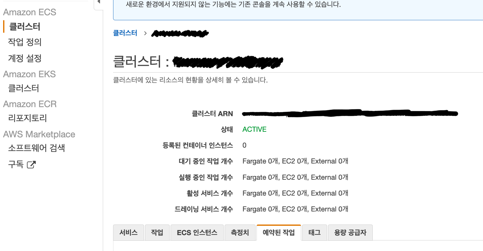 지금까지 구성한 내용을 ECS에 올리기 위해서는 "예약된 작업"이라는 항목을 사용해야 합니다.