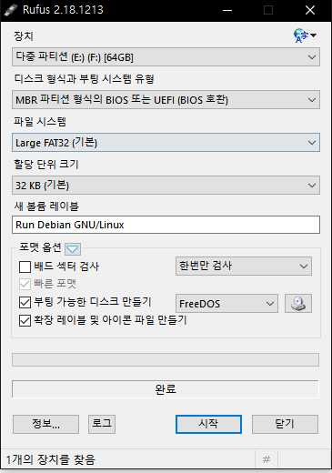 우선 부팅 가능한 usb를 준비해야 됩니다. Rufus를 이용해 Live USB를 만들면 용량이 3~4GB 정도 잡아 먹게 됩니다. 저는 64GB USB로 쓰고 있는데 이것저것 업데이트 하다보니 이것도 꽤나 작은 용량 처럼 느껴지게 됩니다.