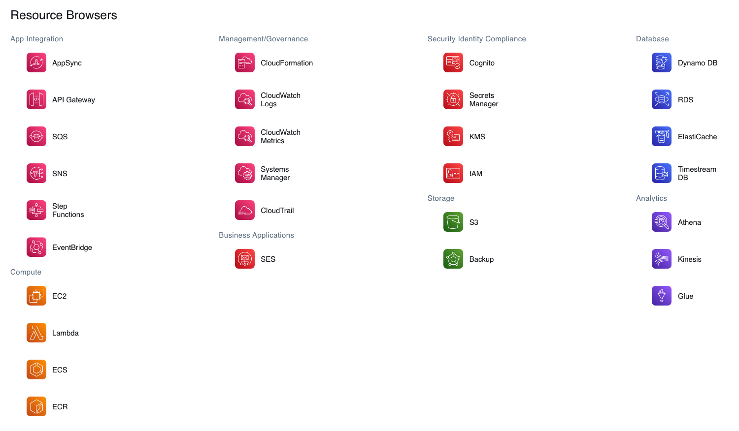DashBoard 상에서 사용가능한 LocalStack의 AWS 서비스들은 다음과 같이 확인된다.