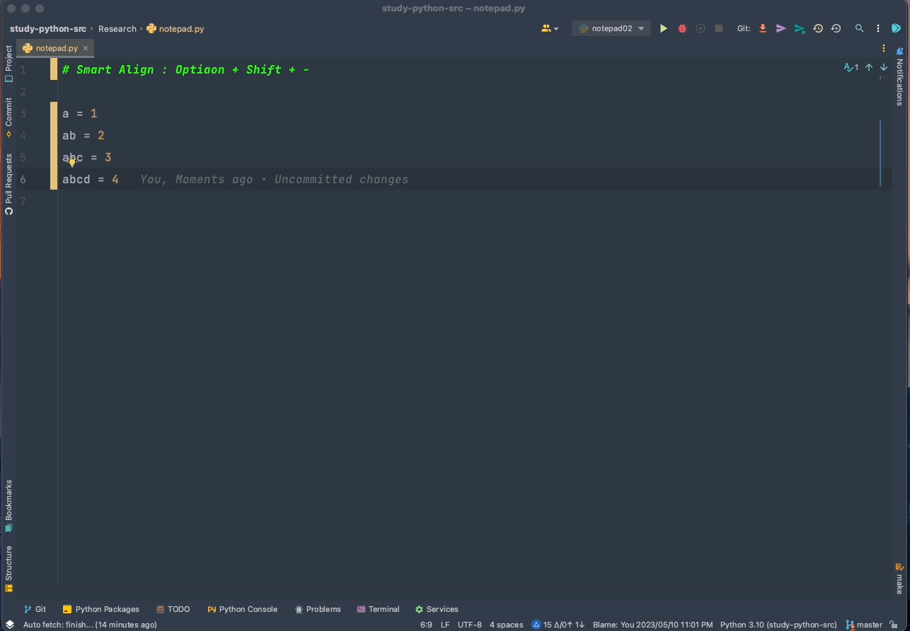 그래서 이번 포스팅은 Pycharm Community 버전을 사용하면 알게 됐던 단축키와 플러그인을 기록해보고자 합니다. 환경은 Mac OS Ventura 13.2의 Pycharm Communit 2022.02을 사용했습니다.