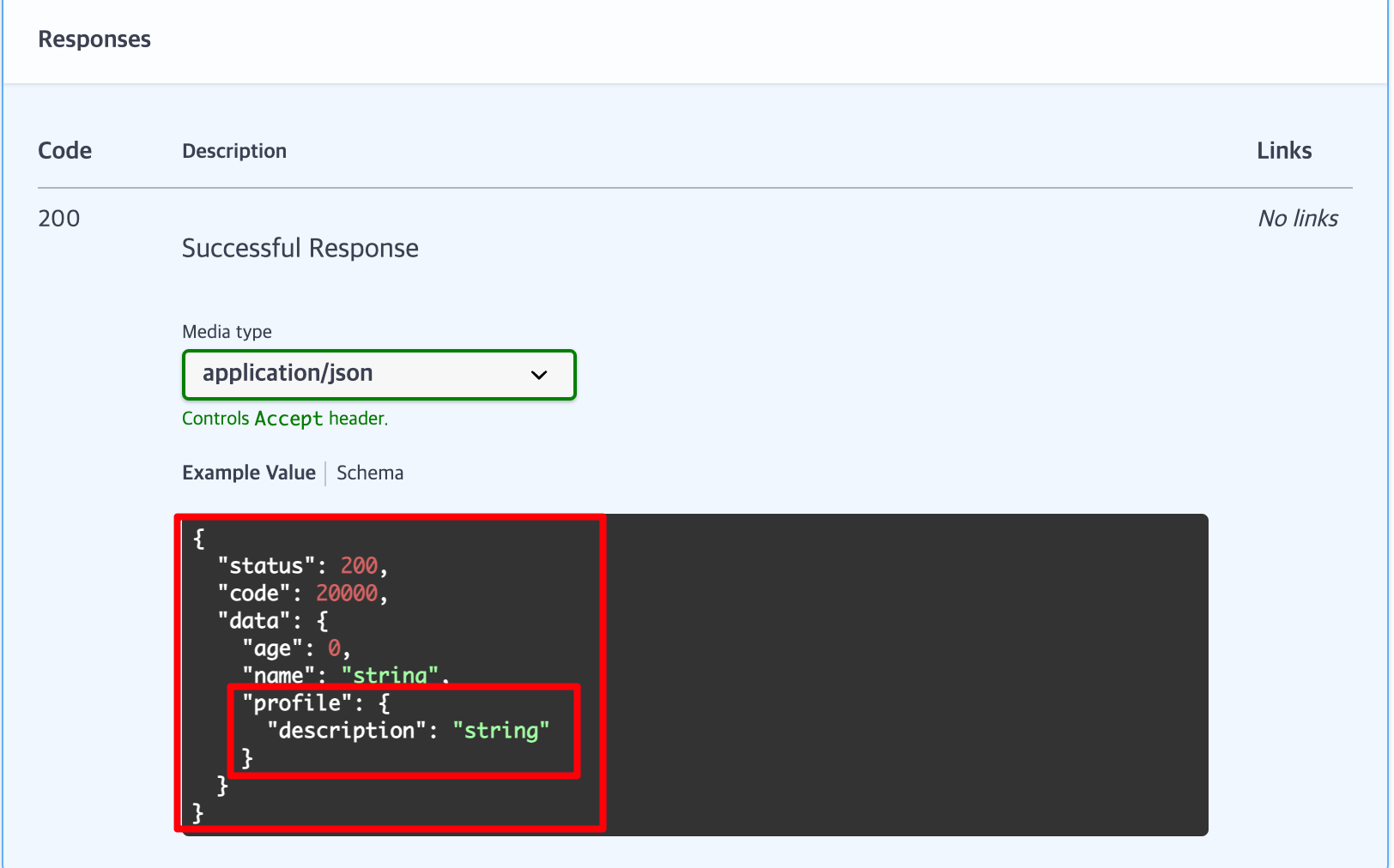 의도한 대로 API 문서상에 데이터가 명시되었다. 미리 정의해 둔 응답 데이터를 Generic을 통해 특정 Entity를 명시하면 동적으로 변경되었다.