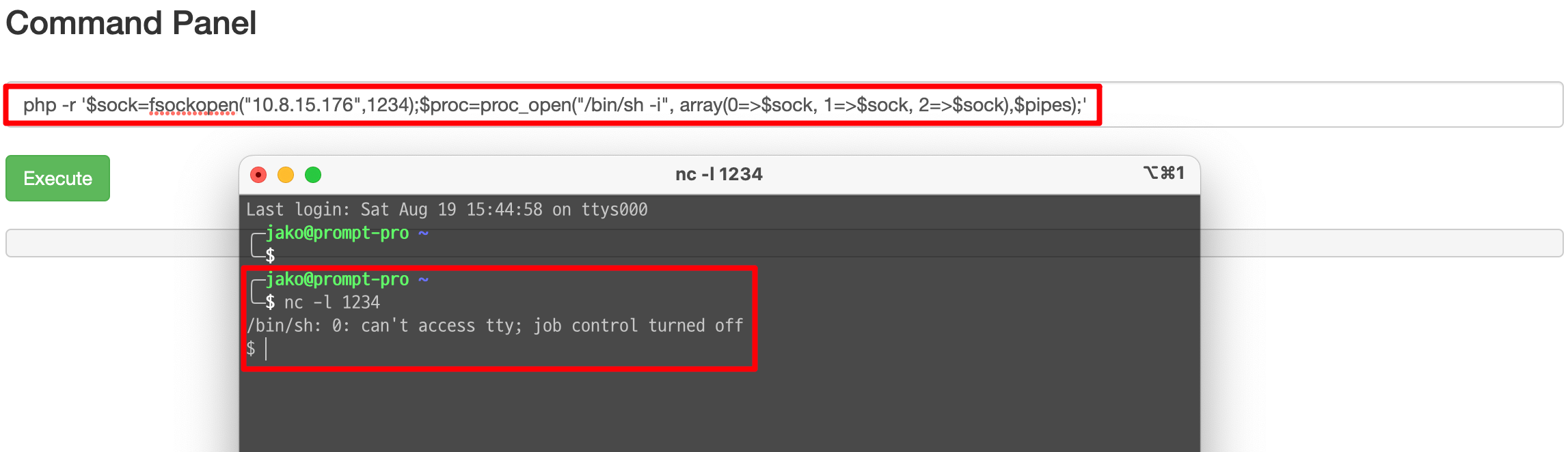 reverse shell의 종류도 다양하다. 즉 어떤 종류의 reverse shell을 command injection으로 넣을 것이냐가 문제이다. 앞서 web enumeration 단계에서 php가 동작하는 걸 확인했기에 php를 통해 reverse shell을 얻어낼 수 있는 command injection을 시도하자.