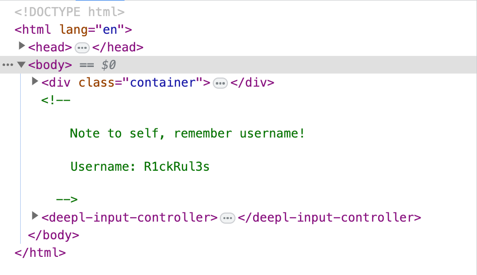 index.html에는 http://TAGET_IP에 접속하면 보이는 main 페이지이다. 무언가 특별한 건 없어보이는데 페이지 소스보기를 통해 보면 다음과 같은 주석문이 눈에 띈다.