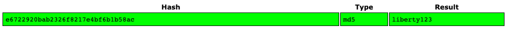 hash 된 문자열처럼 보이는데 이를 crackstation에 넣으면 다음과 같은 정보를 얻을 수 있다.