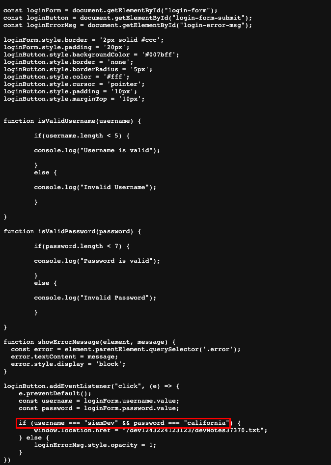 username이 siemDev이고 password가 california인 것을 dev.js상에서 확인되니 이를 가지고 로그인을 시도해 보자.