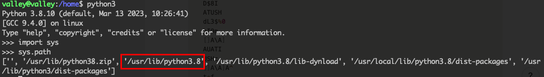 위 문장의 뜻은 즉 base64를 import 하는 과정에서 reverse shell을 실행시키는 python 코드를 삽입하면 된다는 뜻이다. 위치를 특정하기 위해 다음과 같이 Python3.8이 어떤 위치로부터 base64를 쓰고 있는지 알아낼 필요가 있다.