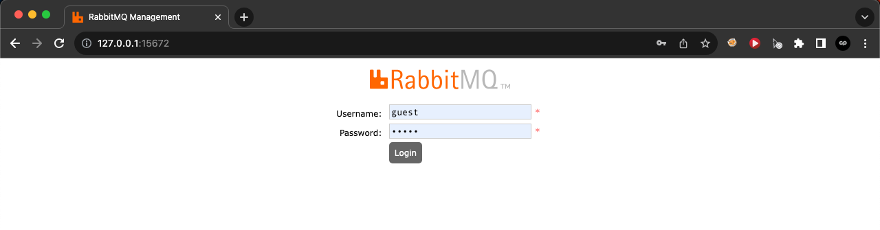 15672 port는 RabbitMQ의 Web Interface를 나타낸다. 즉 http://127.0.0.1:15672에 접속하면 다음과 같은 화면을 볼 수 있다.