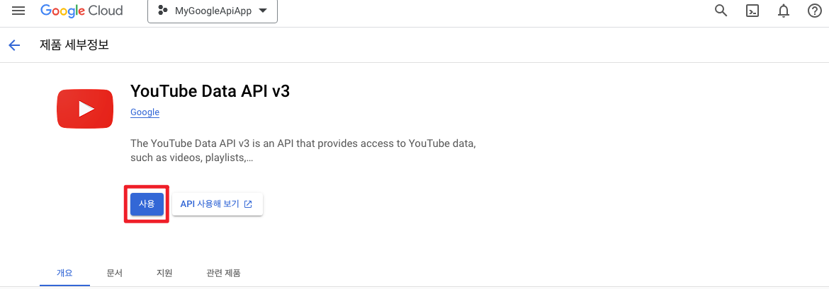 “개요”에서 언급했듯이 제가 사용할 Google API는 Youtube와 관련된 API입니다.