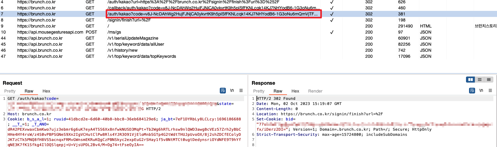 문제는 Brunch에서 사용하는 API 요청을 재연시키려면 KaKao의 OAuth 로그인을 먼저 수행한 뒤에 Brunch API를 사용해 야한 든 점이었다. 여러 시행착오를 겪은 다음 결국 Brunch API 요청을 재연시키는 작업은 실패했지만 이 과정에서 얻은 정보를 기록하고자 한다.