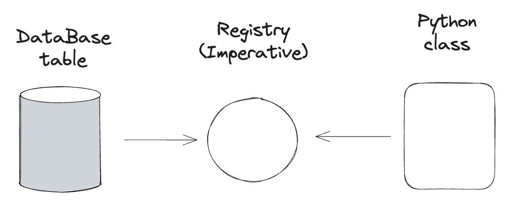 그러나 Imperative Mapping Style은 다르다. 직접 정의한 Class를 데이터베이스 테이블과 Mapping 시켜주는 명시적인 단계가 존재하며 직접 정의한 Class를 통해 Query를 날리는 게 가능하다.
