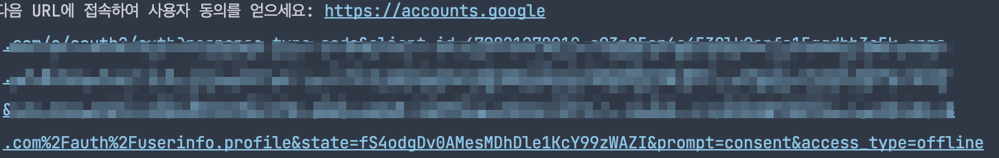 위와 같이 설정을 마치면 다음과 같은 코드를 통해 Google Oauth Login을 시도할 수 있는 브라우저의 주소를 얻을 수 있게 된다.