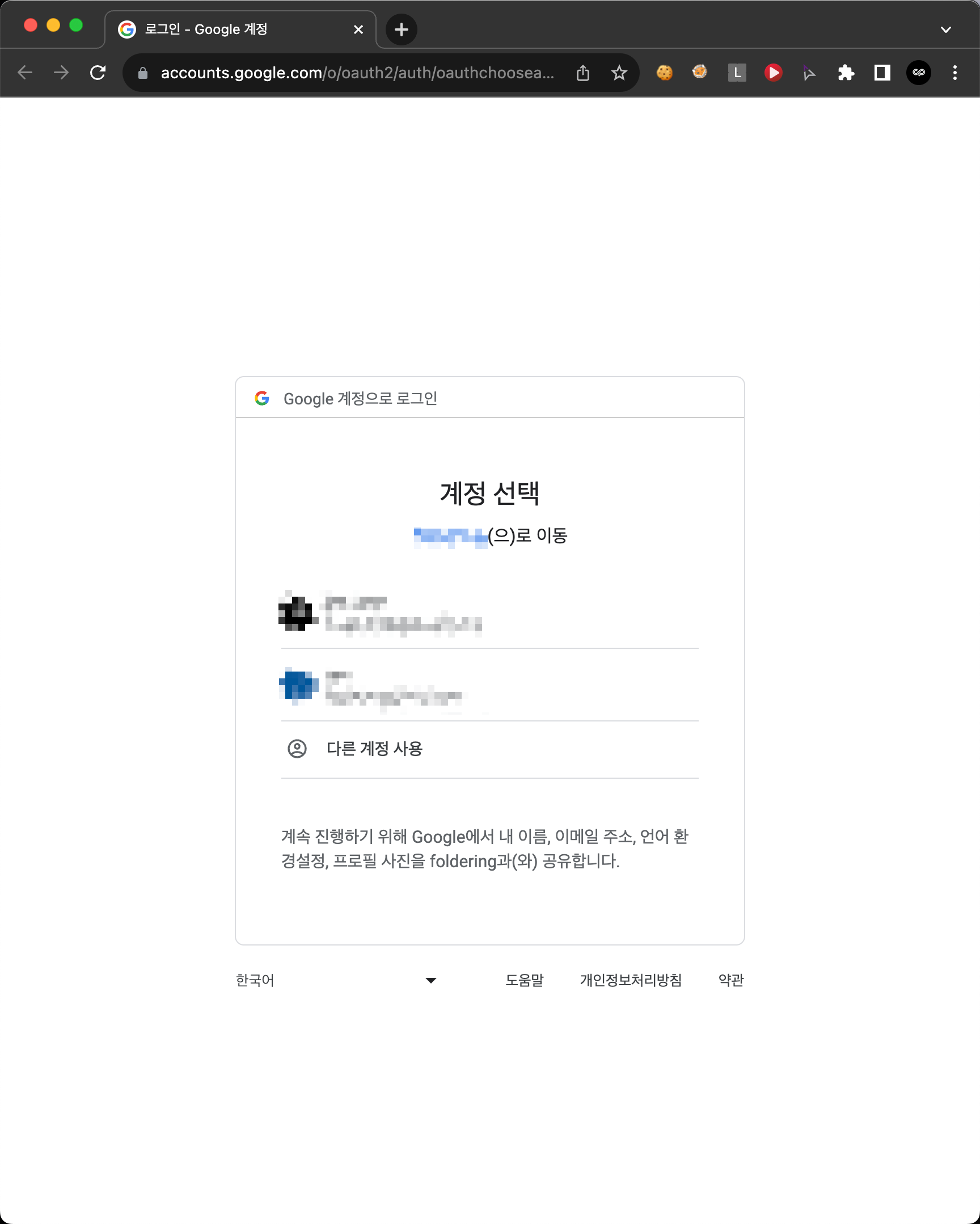 이 링크를 클릭하면 브라우저가 띄워지며 이제 Google Oauth 로그인이 가능한 계정을 볼 수 있다.
