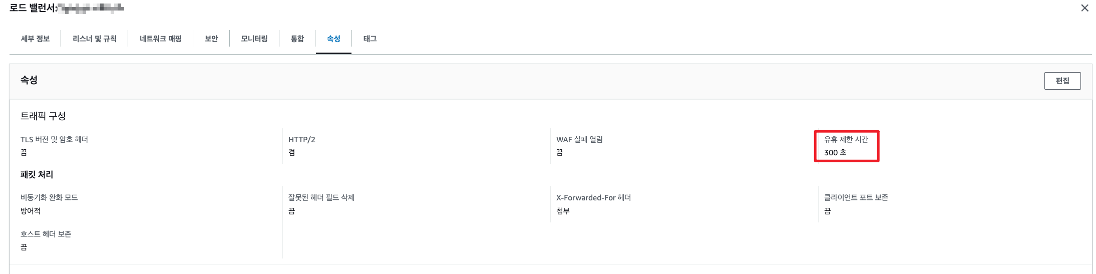 필자의 경우 Nginx 설정만으로는 해결되지 않았다. AWS-EC2를 ELB와 연계해서 사용하다 보니 ELB를 따로 설정하지 않아 발생한 케이스인데 ELB에서도 시간을 따로 설정해 주자.