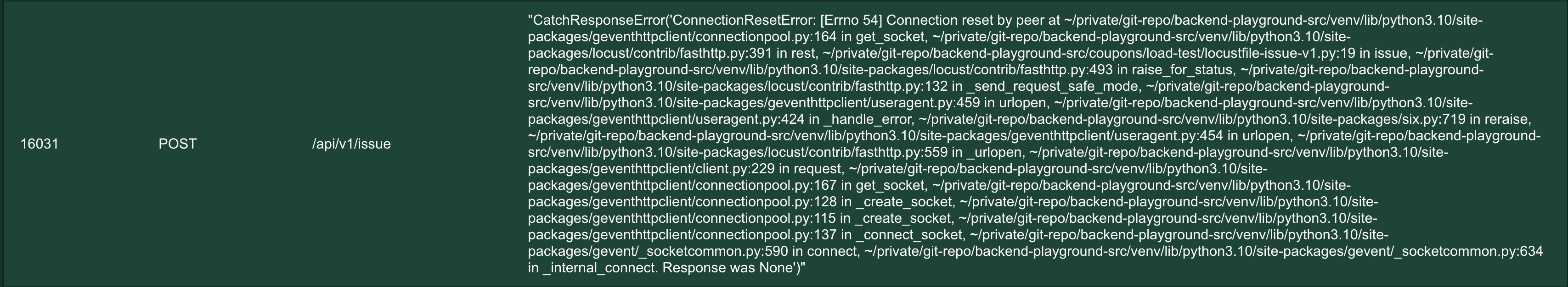 상술한 바와 같이 설정하고 locust를 실행시키면 관련 로그에 다음과 같은 Error가 발생하는 걸 확인할 수 있었다.