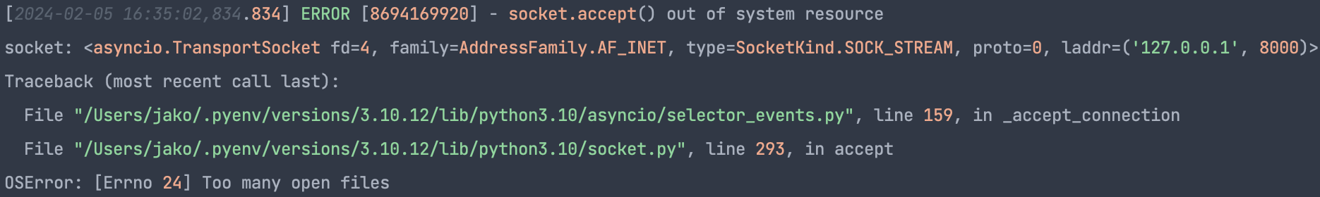 File "/Users/jako/.pyenv/versions/3.10.12/lib/python3.10/asyncio/selector_events.py", line 159, in _accept_connection
