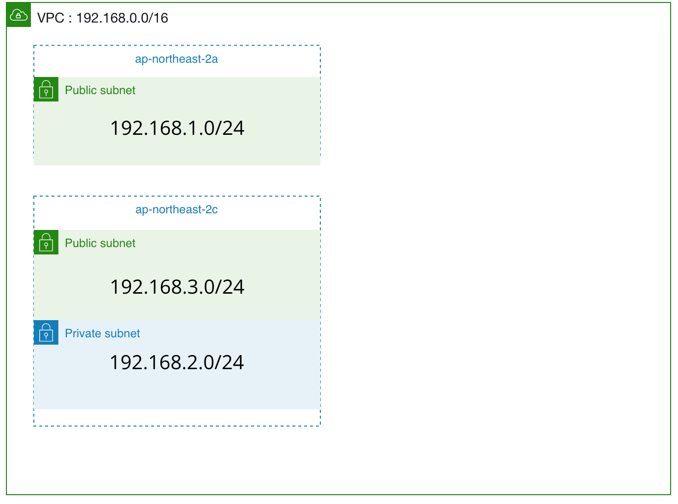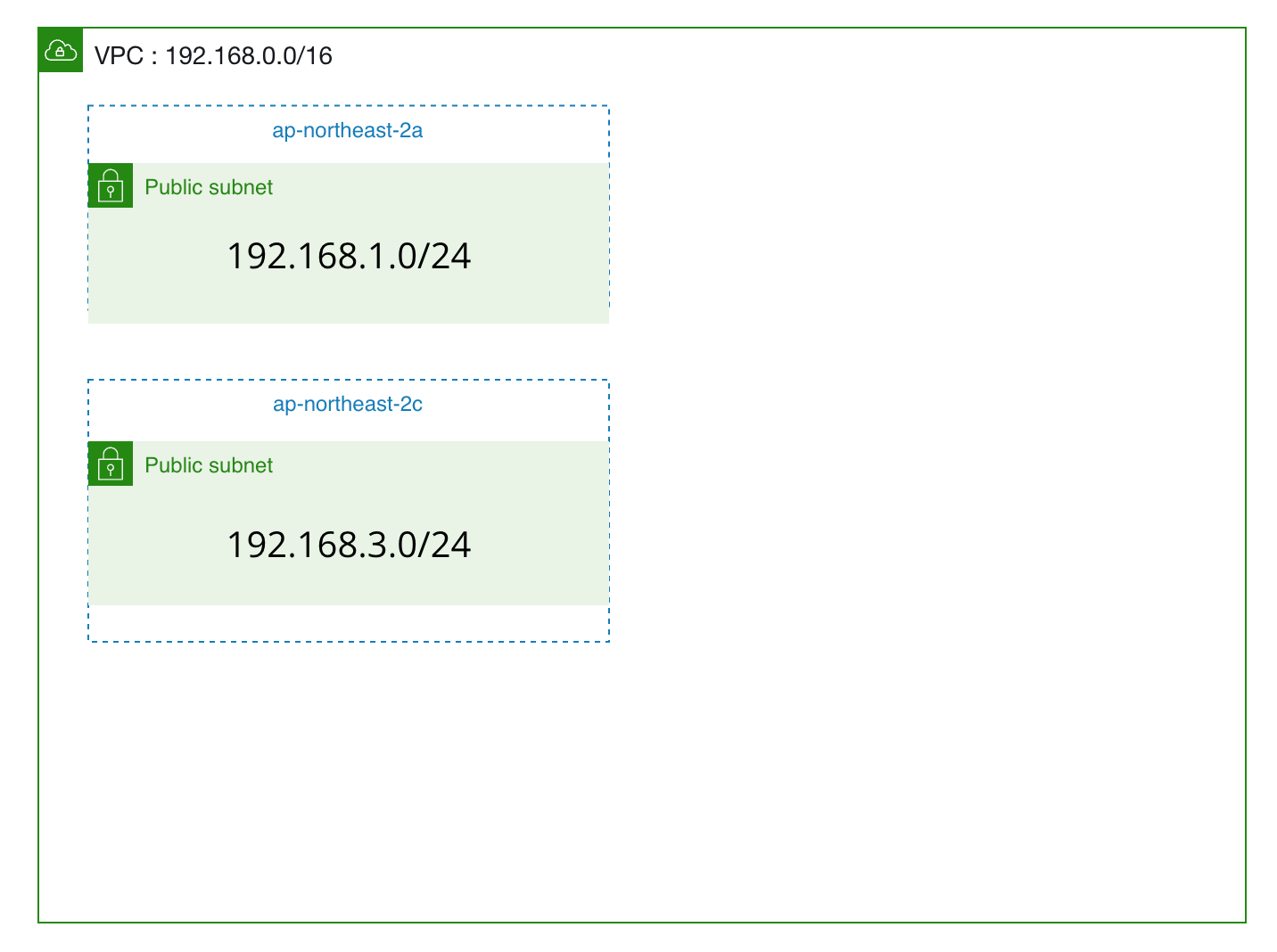 두 개의 가용용역(ap-northeast-2a, ap-northeast-2c)에 각각 Public Subnet을 생성한 모습이다.