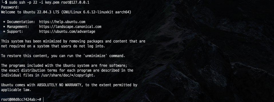3가지 다 띄워서 테스트해 본 결과 Ubuntu22.04를 띄웠을 때 sshd가 내부적으로 실행되고 있었고 ssh 접속이 가능했다.