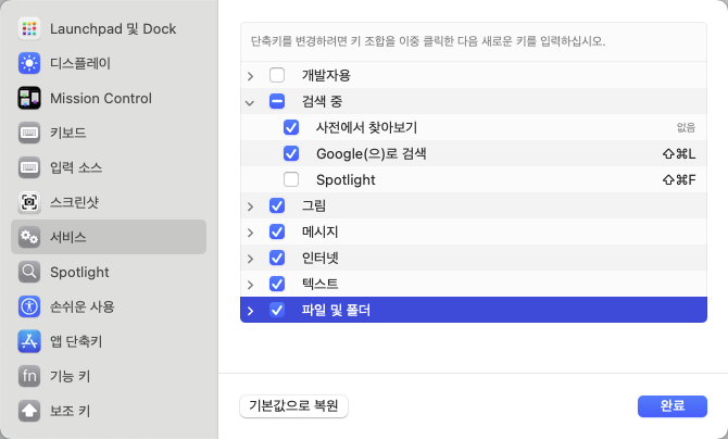 필자는 위에 첨부된 사진의 SpotLight 단축키를 쓰지 않기 때문에 해당 옵션을 비활성화 시켜놓았다. 해당 옵션을 사용중인 상황이라면 Intelli J의 프로젝트 찾기 기능을 다른 단축키로 대체하여 사용하는 방법도 고려해볼 수는 있을 것 같다.