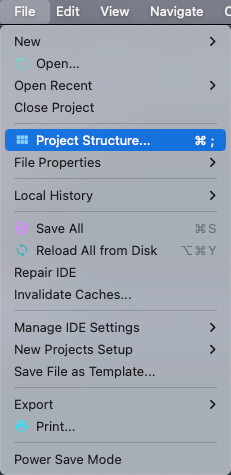 intelli-j에서 Java Library를 설치하기 위해 먼저 "Project Structure" UI를 열도록 하자.