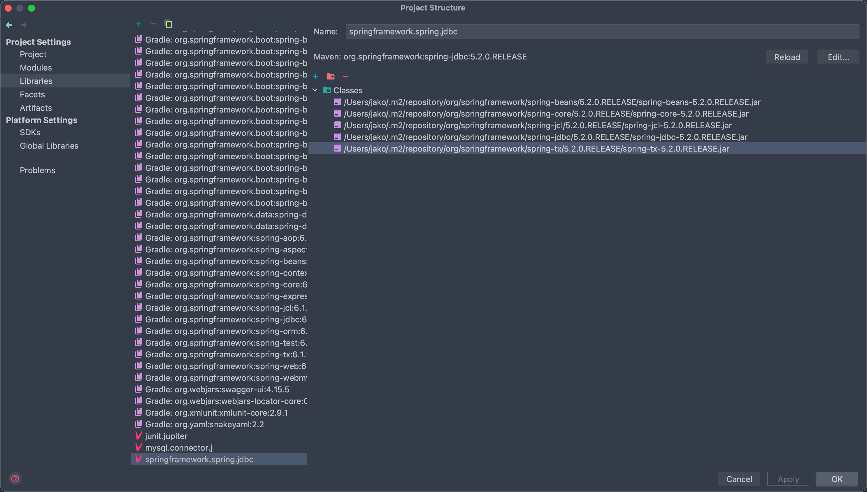 Intelli-j에서 위와 같이 “springframwork.spring.jdbc”를 설치하면 SpringBoot Project를 생성하지 않고도 jdbc template이 사용 가능하다. intelli-j에서 라이브러리를 추가하는 방법은 이 링크를 참조하자.