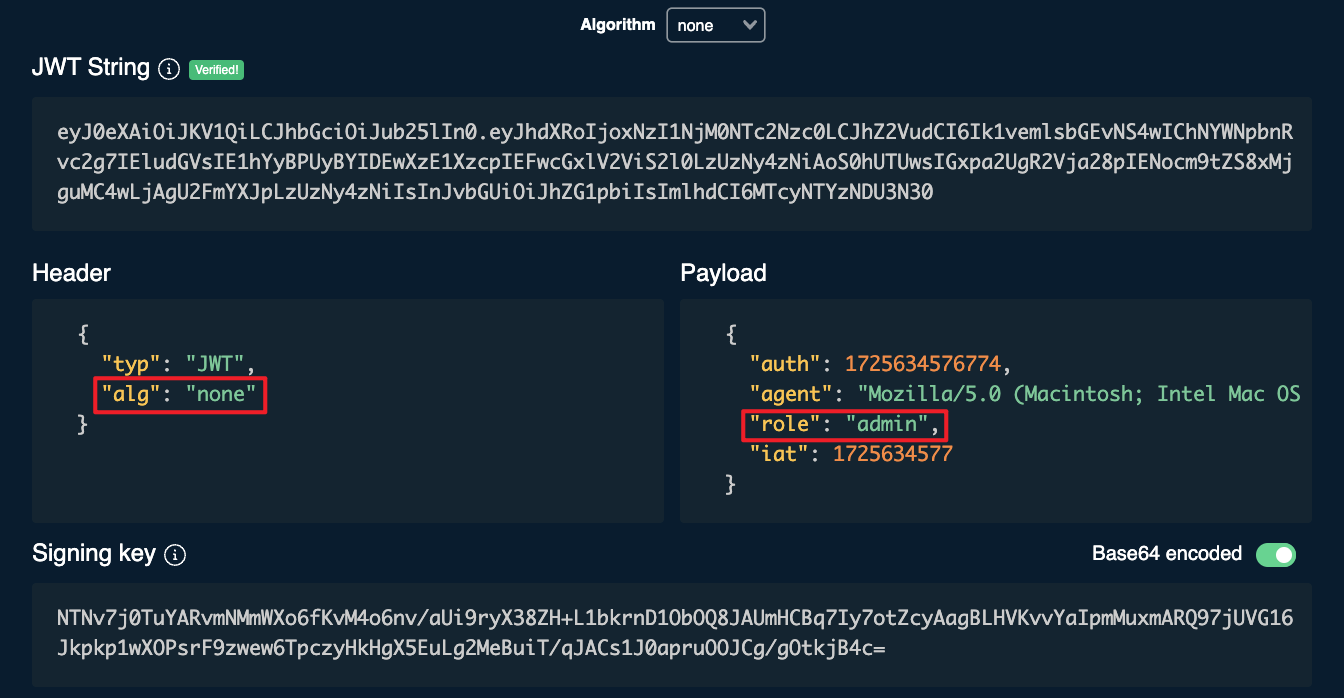 JWT None Algorithm Attack