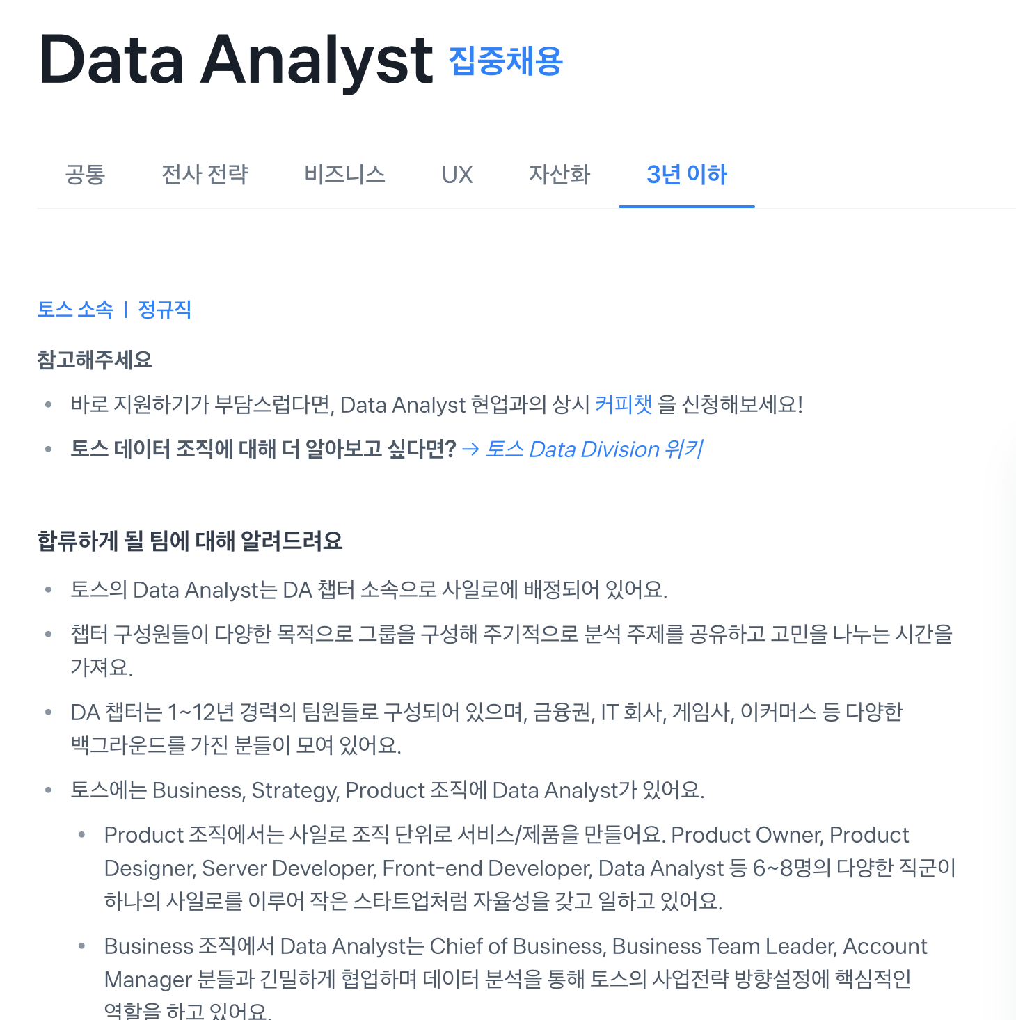 토스 채용공고 API에서 필요한 데이터를 어떤 식으로 추출했는지에 대한 코드는 작성하지 않을 예정이다.