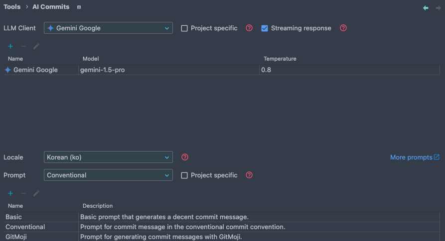 또한 AI가 만들어내는 Commit Message가 좋다고 할 수 있는가? 에 대한 부분이다. 나름의 기준과 자료를 가지고 Commit Message 템플릿을 만들고 이를 기준으로 Commit Message를 생성했어도, 읽다보면 뭔가 어색하다. "어떻게 작성하는 게 좋을까?"를 고민하는 시간을 줄여준다는 차원에서 일단 생산성을 챙길 수 있지만 계속 수정을 거치면서 해결해 나가야 하는 부분이라 본다.