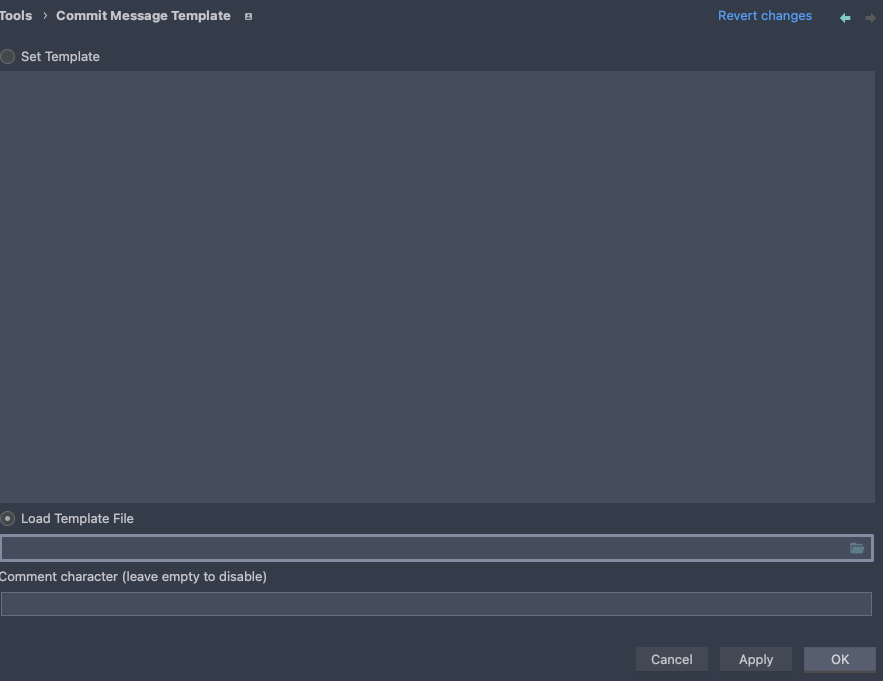 해당 아이콘은 미리 설정된 Commit Message Template 참조하는데 이 설정은 “ Settings > Tools > Commit Messate Template” 에서 설정할 수 있다.