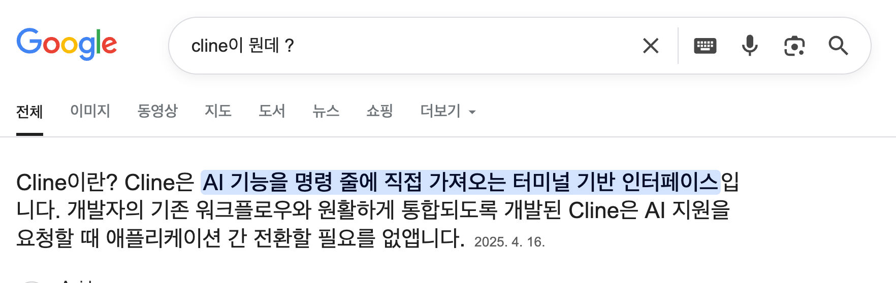 Visual Studio Code는 익히 알고 있었지만 Cline은 처음 들어보는 도구이다. Cline이 뭐냐고 물어보니 Google에서 다음과 같은 답변을 얻었다.