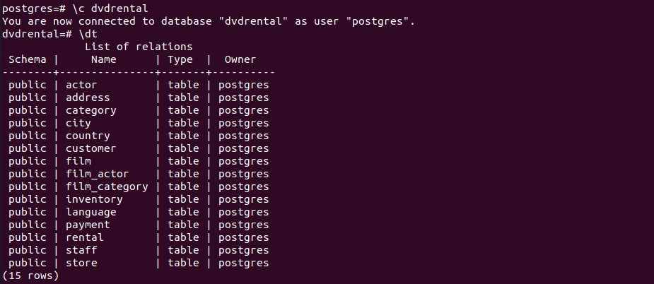 $ wget https://sp.postgresqltutorial.com/wp-content/uploads/2019/05/dvdrental.zip