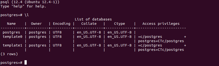 데이터 베이스가 잘 생성된 것을 확인한 뒤 psql을 종료하고 다음과 같이 입력합시다.