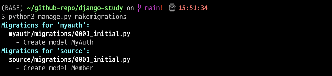 이후 makemigrations를 시도하니 정상적으로 실행됩니다.