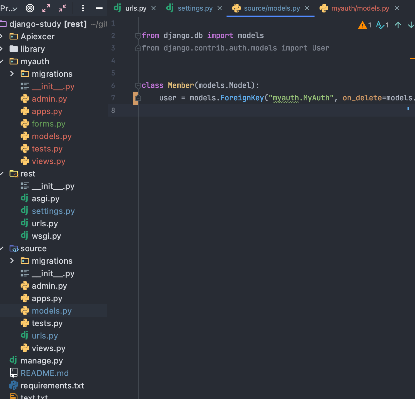 이것저것 알아보다 settings.py 에 셋업 한 커스터마이징 유저 모델을 다른 앱에서 상속받을 수 있게 하라는 글을 발견했습니다. 제 경우에는 다음과 같은 app에서 user를 사용하고 있었습니다. 그래서 커스터마이징 한 유저 모델과 Foregin Key로 설정을 다시 해주었습니다.