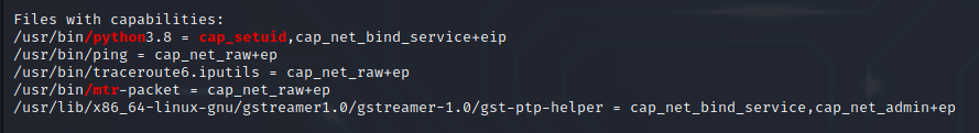 python3에 cap_setuid가 걸려있습니다. GTFObins에서 root 권한을 얻기 위한 명령어를 찾아 실행해봅시다.