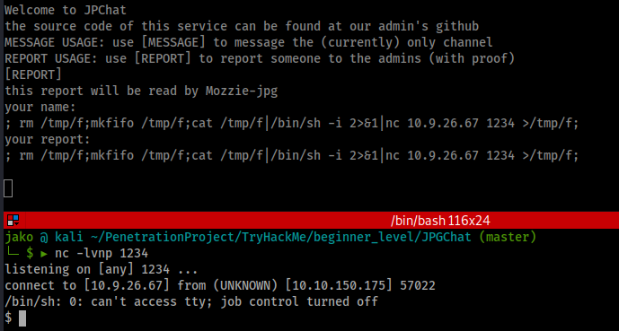 report_from()의 일부분인데 사용자 입력값을 그대로 받아들여 리눅스 명령어를 실행하는 os.system() 함수의 인자 중간에 연결해서 사용하고 있습니다. 마치 ServerSide Injection 으로 풀어낼 수 있을 것 같습니다. 이 경우에는 ';' 문자를 써서 명령어를 연결하여 Reverse Shell을 얻을 수 있습니다.