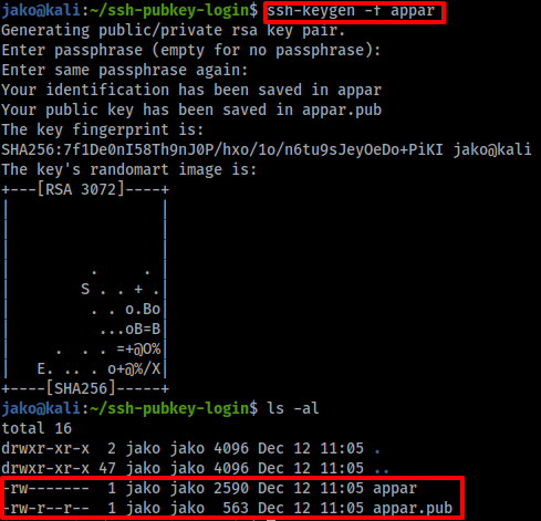 하나는 denied 당했고 다른 하나는 이동이 가능했다 apaar 계정으로 SSH public Key Login이 가능한 계정은 apaar이다. 우선 Victim이 아닌 로컬에서 다음과 같이 ssh 키 쌍을 생성하자