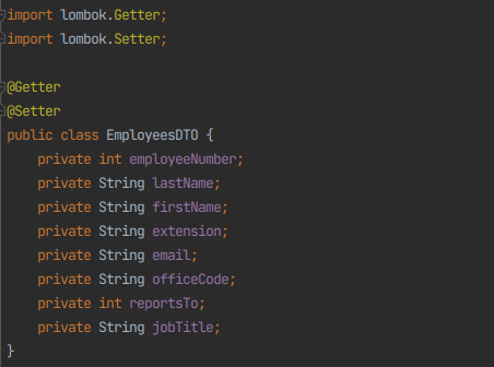 위의 설정을 pom.xml에 추가해주고 다음과 같이 EmployeesDTO 클래스에 Annotation을 달아주자.
