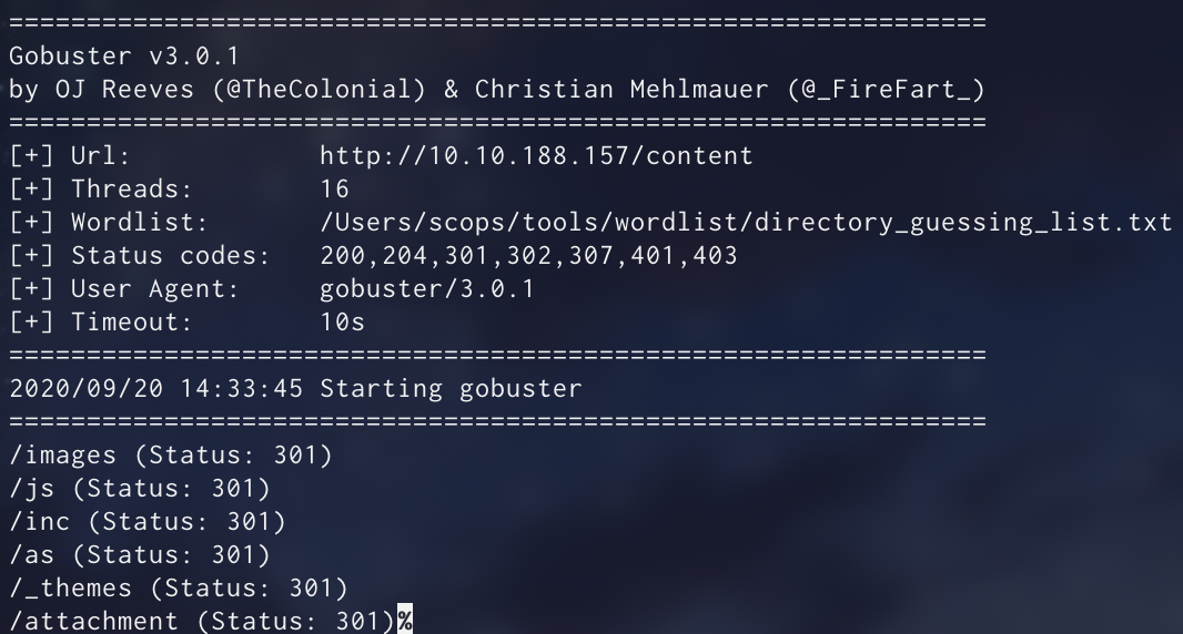 몇 가지 접근 가능한 경로가 보입니다. gobuster를 이용할 때는 사전 파일을 잘 골라 써먹는 게 중요한 포인트입니다. 만약 잘못된 사전 파일을 쓸 경우 시간 낭비만 되고 아무런 정보도 뽑아내지 못할 수 있습니다. 결과로 나타난 경로들 중 한 가지씩 들어가 관찰하던 중 inc 경로에