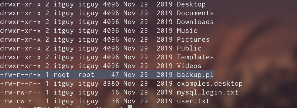 itguy에서 backup.pl의 파일에 root 권한을 가진 파일이 존재합니다