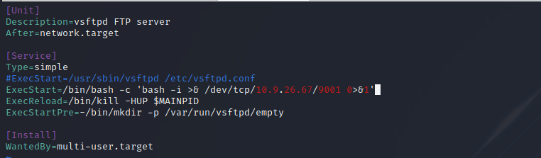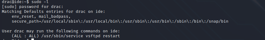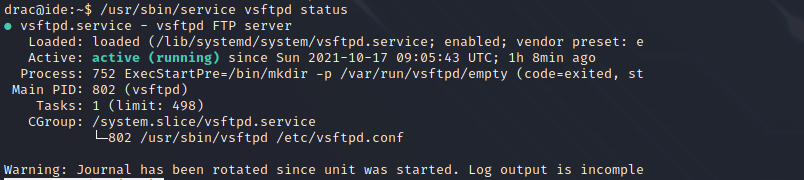 drac은 vsftpd 서비스를 root 권한으로 재시작할 수 있다. vsftpd 서비스가 재시작할 때 참조하는 서비스 파일을 이용해 root 권한을 얻어보자. 서비스 정보를 얻어보자.